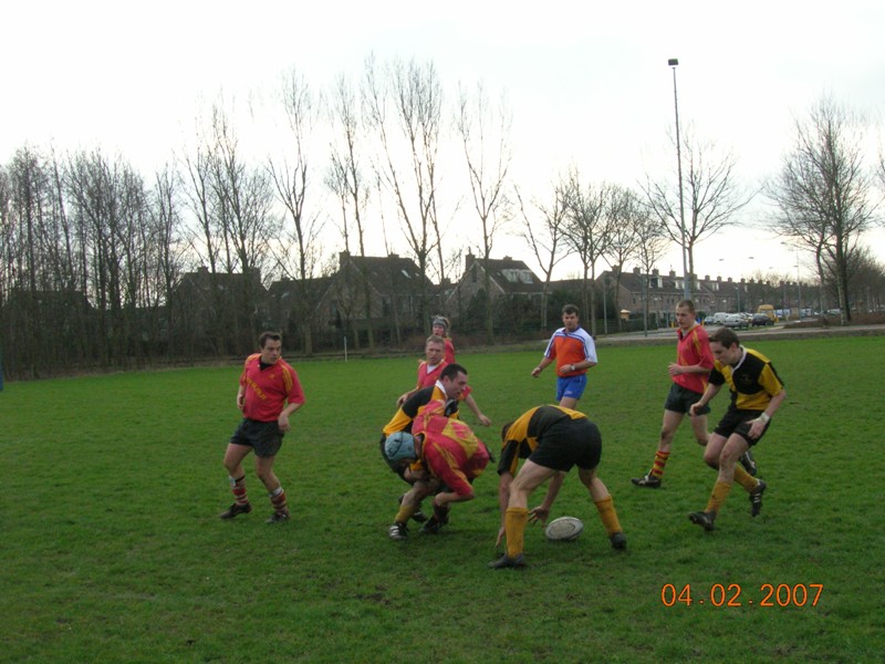 Deze kon de bal in handen geven van de aanstormende fly-half Jack van de Plas, die door de 2 tackels heen brak en een try scoorde. Met de conversie van Ronald kwam de stand op 7 - 0. Het bleef de eerste helft zeer spannend. Door ijzersterk te verdedigen wisten The Smugglers de inmiddels warmgelopen spelers van Den Helder keer op keer te stoppen.